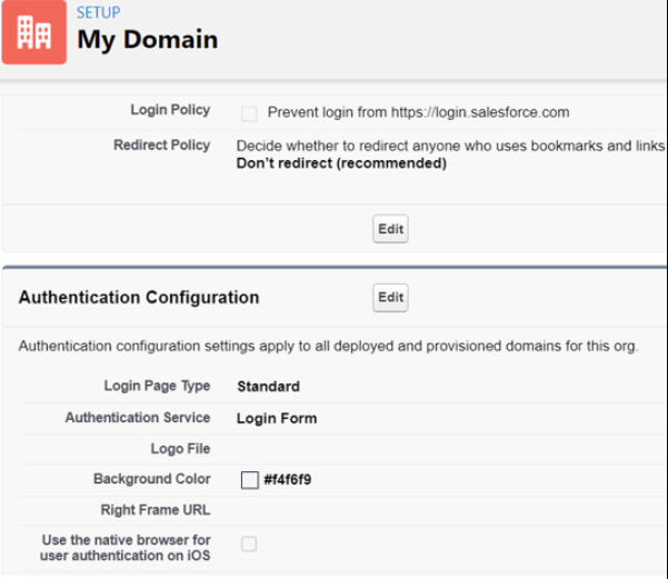 Go to the My Domain page and change the Authentication Service field to Login Form.
