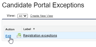 Find the Candidate Portal Exceptions metadata item, and select Manage Records.